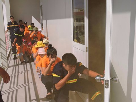 Kỹ năng 3: Hướng dẫn các bé, chỉ cho các bé những lối thoát an toàn có thể thoát ra ngoài, lưu ý với các bé là cố thoát ra ngoài càng nhanh càng tốt.