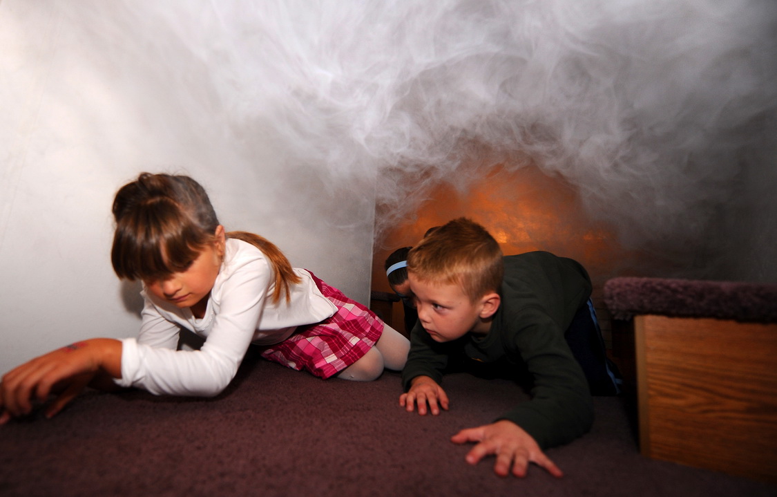 Kỹ năng 5: Hầu hết 95% đám cháy hiện nay, số người tử vong phần lớn là do ngạt khói chứ không phải do lửa. Hãy chỉ cho bé cách di chuyển ra ngoài bằng cách bò sát mặt đất, nếu có thể hãy dùng vải thấm nước và khoác thêm áo nhúng nước có thể.